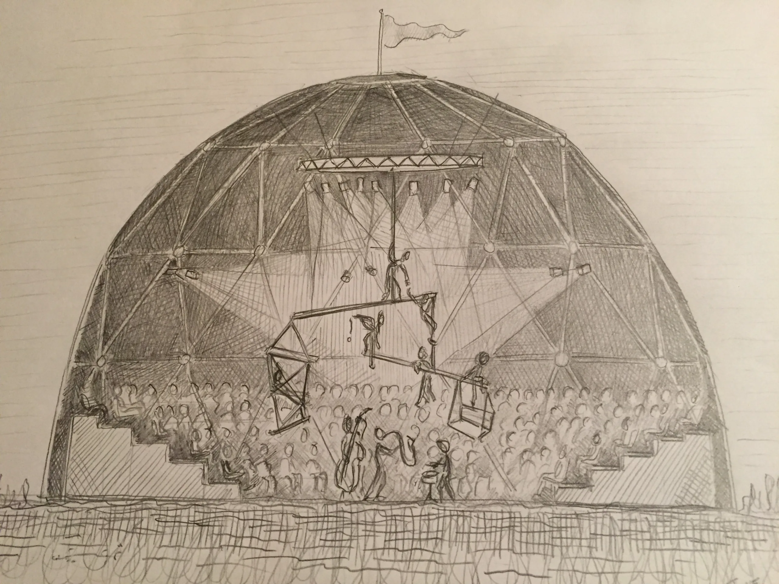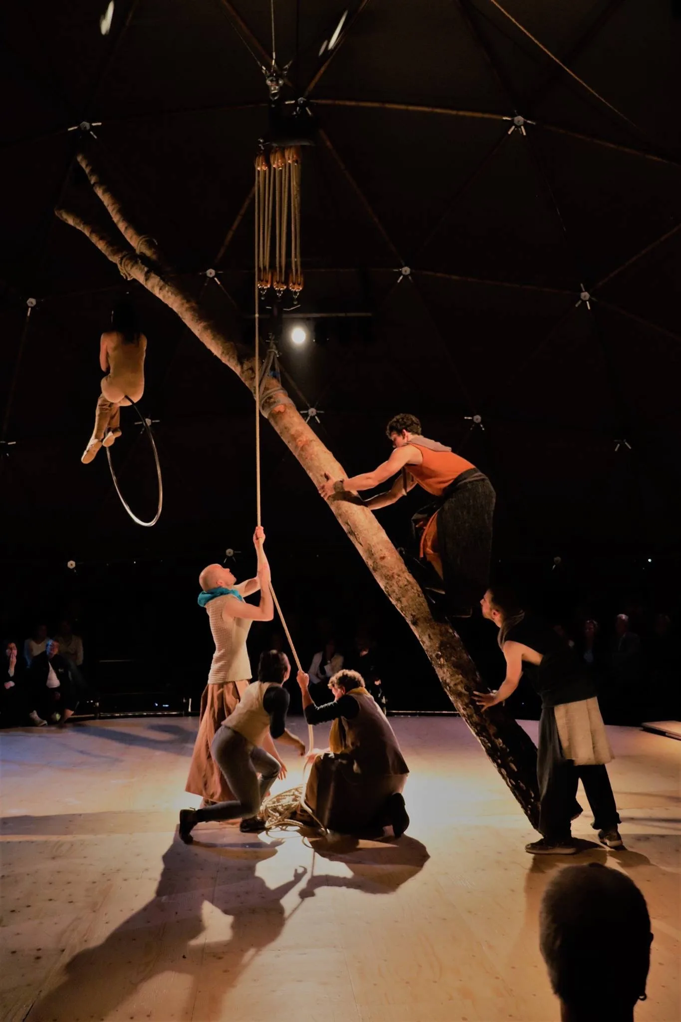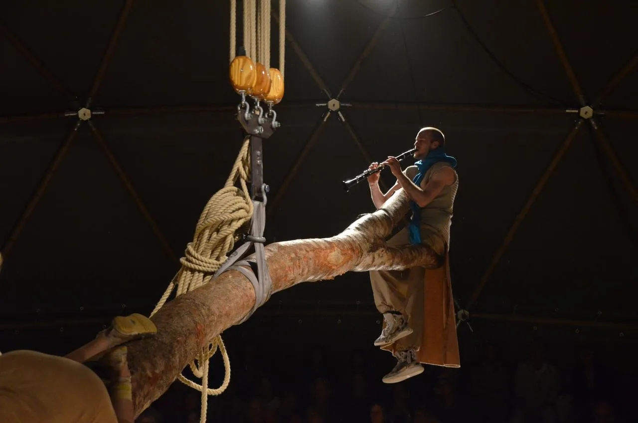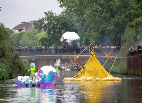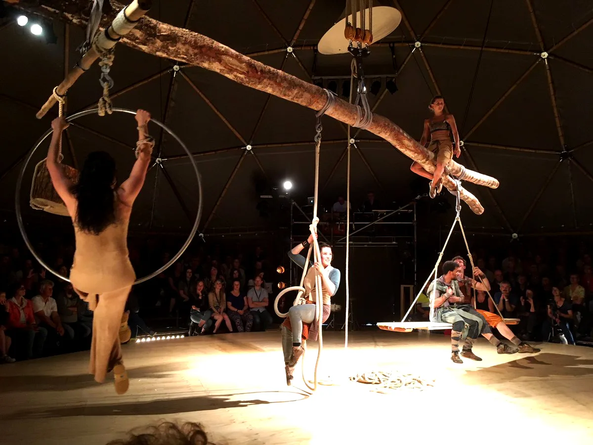 Scenografie van een totaal beleving op locatie waar aan de hand van het centraal gestelde thema “Mienskip” (gemeenschap) een plan is ontwikkeld met als uitgangspunt “zoeken naar balans”. Alle bijbehorende onderdelen die te maken hebben gehad met de voorstelling van de tent, de levensgrote hangende installatie, de tribunes, het middenpodium, de terrein inrichting en de korte bootreis ernaartoe zijn speciaal opgezet voor het vier weken durende project. Bijzonder is de combinatie van de bamboe dome constructie die speciaal voor dit project is gebouwd, waar vanuit de nok een boom horizontaal kon worden omhoog gehesen waarop en rond de voorstelling zich afspeelde.